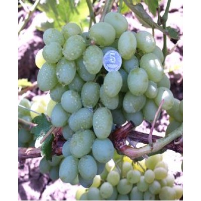 Ягоды большие (до 20 гр.), образуют конические кисти рыхлой текстуры (до 2,5 кг). Оттенок ягод изменяется в периоде вызревания: от зелено-молочного до желтовато -зелёного; кожура неплотная, внутренности сочные, немного терпкие с кислыми нотками, запах муската.